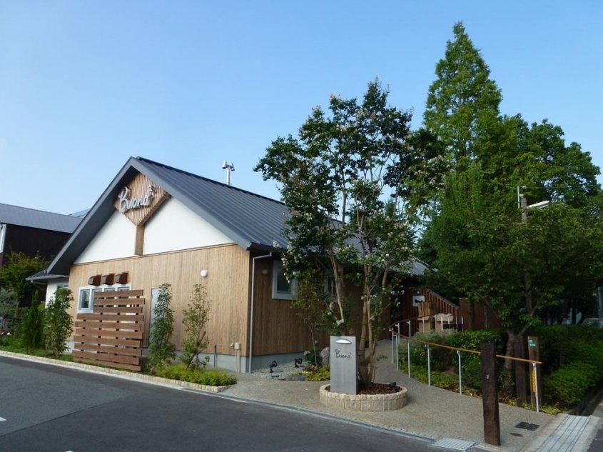 組合創立50周年の記念事業として、組合会館南側敷地内に飲食施設の建設を行いました。コンペ形式で店舗案を募集し、また同時に、この店舗でレストランを運営していただけるオーナーさんも選定し、現在のイタリアンレストランBuono2(ボーノ・ボーノ)が誕生しました。オーナーは元プロ野球選手の光山英和 氏です。