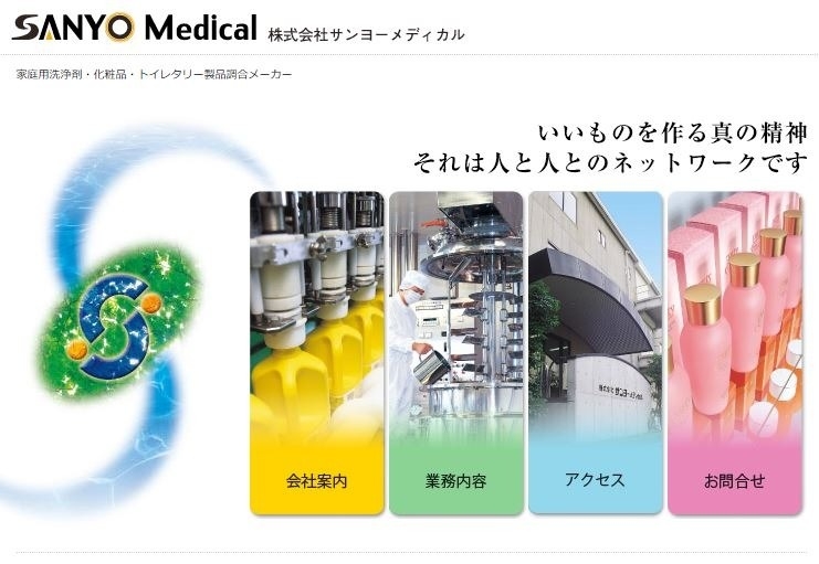 株式会社サンヨーメディカルは家庭用・業務用洗浄剤の受託製造及び化粧品・医薬部外品の製造企業です。