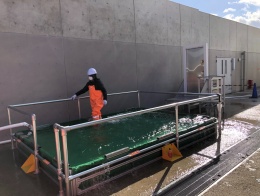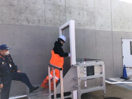 今回は、災害種別を「水害」として、水圧ドア体験・換水路歩行訓練等を体験しました。