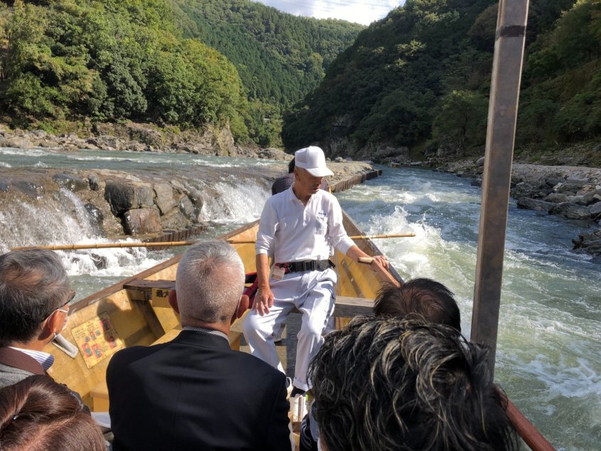 例年、秋に開催される協同組合の全員例会は、コロナ渦の中、できる限りの配慮をしながら、近場の京都方面で組合員企業22社参加のもと実施しました。(参加者:25名) 全員例会の様子 初日は、京都ホテルオークラ会議室において、協同組合の令和2年度上期事業報告と㈱大阪木材団地サービスの株主総会が行われました。 中畑理事長 消毒等感染症対策も万全に行いました。 保津川下りの様子 翌2日目は晴天に恵まれ、観光組は亀岡から嵐山までの「保津川下り」を体験した後、嵐山において昼食及び散策等を楽しみ、 ゴルフ組は「瀬田ゴルフコース 北コース」にてゴルフコンペを行い、各々参加者相互の親睦の和を深めました。