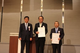また、退任役員の中で在任期間10年以上となる、今回出席の中畑前理事長、山下前理事へ堀川新理事長より感謝状と記念品の贈呈が行われました。