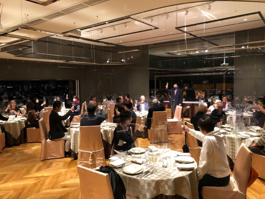 感染症状況は減少しておりますが、会場では、一テーブル4名、アクリル板設置、消毒液などの配備などの対策