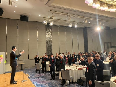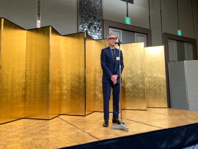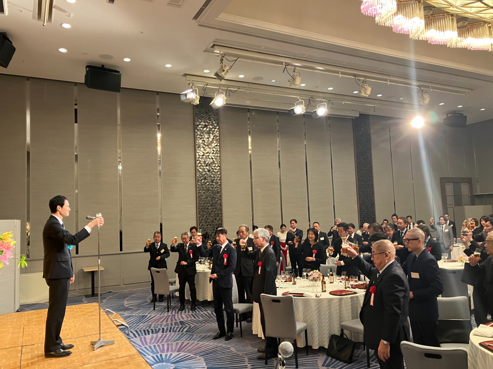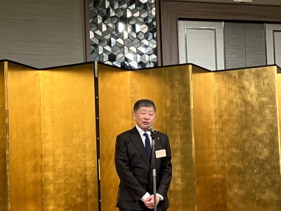 当協同組合の新年互礼会を、令和8年1月14日(水)にスイスホテル南海大阪(大阪市中央区)にて多方面から来賓の方々を招き、組合員企業・友好企業、総勢74名の出席のもと盛大に開催した。 石本 勝範 理事長 本屋 和宏 堺市副市長 立札風景 ㈱商工組合中央金庫 大阪市店 藤本 亮 氏による乾杯の音頭 開宴挨拶 豊岡 副理事長 閉宴挨拶 高島 副理事長 大阪木材工場団地協同組合にもどる