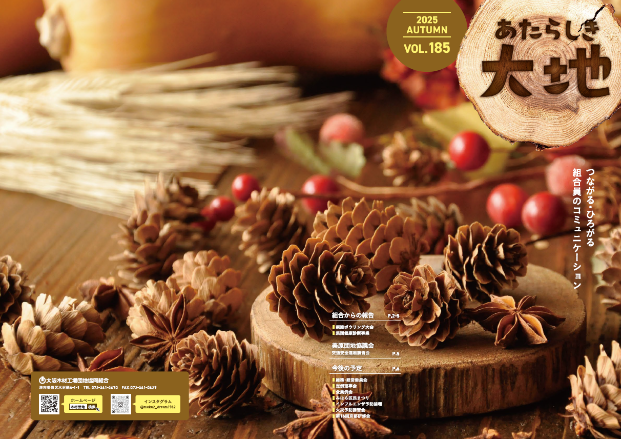 あたらしき大地 秋号を発刊しました。 今号は、親睦ボウリング大会や集団健康診断などを掲載しておりますので、ぜひご覧ください! あたらしき大地 秋号VOL.185 ■1~2頁 ・親睦ボウリング大会 ■3~4頁 ・親睦ボウリング大会 ・集団健康診断事業 ・交通安全運転講習会 ■5~6頁 ・今後の予定 ・広告ページ